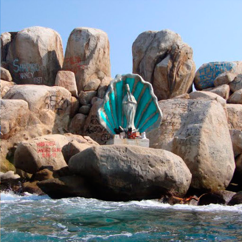 Es una isla que sirvió de albergue para piratas, en el lugar puedes visitar a la virgen de Guadalupe o podrás escuchar las olas que chocan en las rocas.